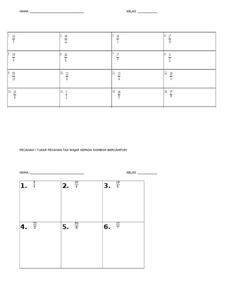 Latihan menukar pecahan tak wajar kepada nombor bercampur. 3 manakala baki yang terdapat hasil pembahagian akan ditulis sebagai pengangka. Latihan Pecahan Tahun 6 Operasi Darab Bahagi. Nombor bercampur juga boleh ditukar menjadi pecahan tak wajar dengan melakukan tiga langkah berikut.